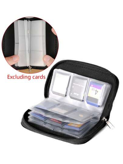 可放置22個卡槽的存儲卡袋、攜帶式錢包,分為4個大槽、18個小槽,適用於cf Sd/微型sd Micro Sd Sdhc Ms Ds遊戲配件的存儲盒 - 黑色 - 查看 1