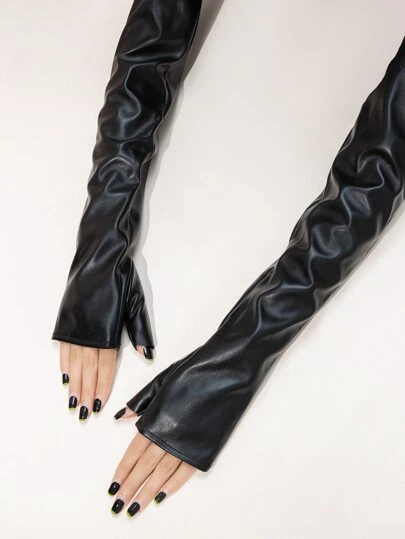 街頭實心綁帶手套"} (Note: "Long Fingerless" is not a commonly used term in Chinese, so I have translated it as "solid - 黑色 - 查看 1