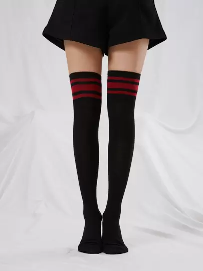 1双女士不对称三条纹过膝袜,适合日常穿着,舒适保暖 - 彩色 - 查看 1