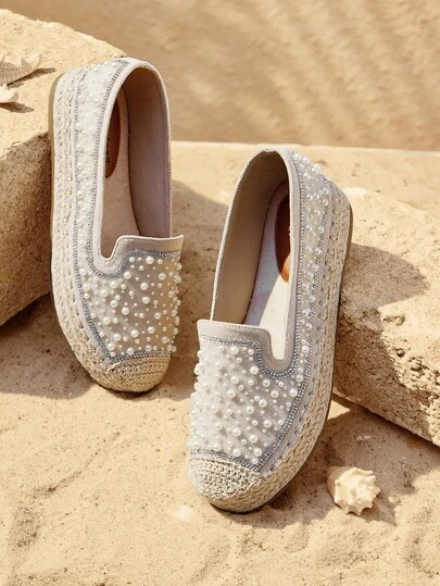 Styleloop 女士平底一脚蹬鞋,波西米亚风格,复古美式,波西米亚风,西部风,音乐节,派对装 - 米色 - 查看 1