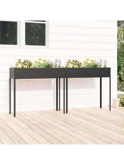 Stylish Anthracite Galvanized Steel Garden Planters Set Of Two Durable Outdoor Flower Pots - 黑色 - 查看 1
