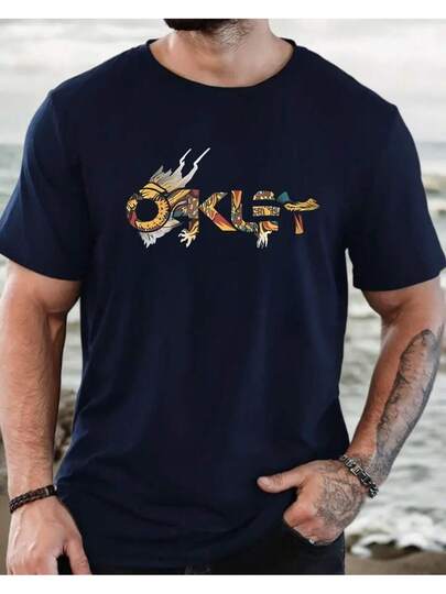 Stylish Oak Printed T-Shirt Men's Cotton Shirt Style Streetwear - 藏蓝色 - 查看 1