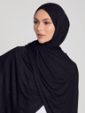 1条女士黑色弹力针织头巾,轻盈透气纯色长款头巾,适合春夏连衣裙搭配。