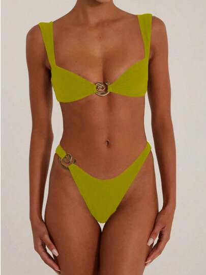 夏日假日海滩比基尼泳装套装 - 青檸色 - 查看 1