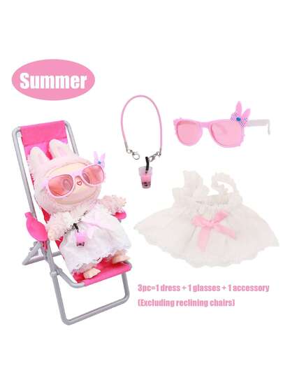 夏日海滩度假套装,搭配太阳镜和珍珠奶茶杯配件,适用于拉布布,时尚配饰及周边(不含毛绒玩具,仅含衣服和眼镜配件) - 彩色 - 查看 5