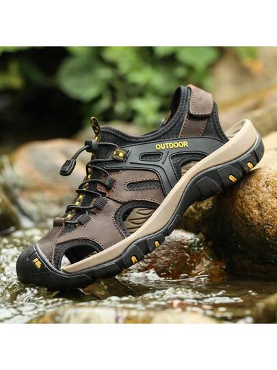 夏季男士凉鞋软底防滑防水厚橡胶鞋底户外透气舒适运动凉鞋,加大码 - 暗棕色 - 查看 1