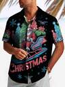 男士加大码万圣节骷髅印花休闲度假户外衬衫,3D数码印花Polo领胸袋锚章鱼鲨鱼艺术图案假日休闲短袖衬衫