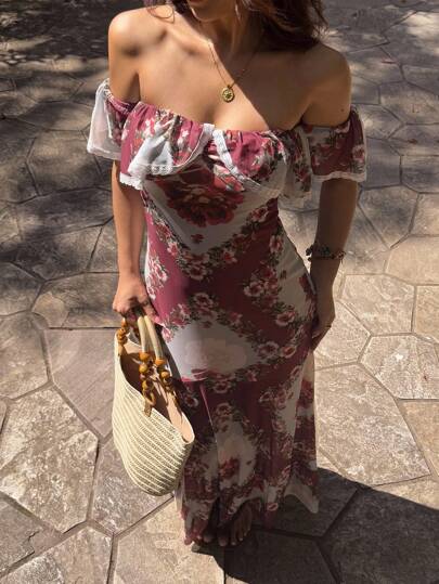 Sunnyshic 优雅花卉印花露肩度假连衣裙 - 彩色 - 查看 1