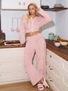 SweetSlumber 女士可爱情人节爱心小熊印花撞色粉白圆领短袖睡衣套装