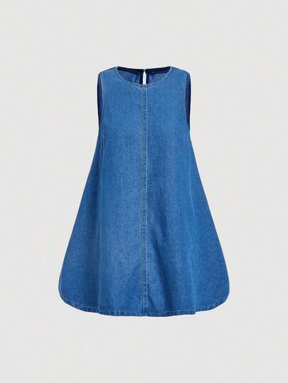 Sweetra 女士休闲圆领无袖牛仔连衣裙 - 藍色 - 查看 1
