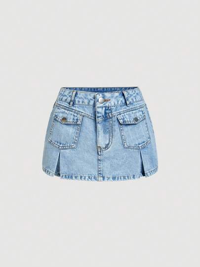 Sweetra 女士休闲牛仔迷你裙 - 藍色 - 查看 1