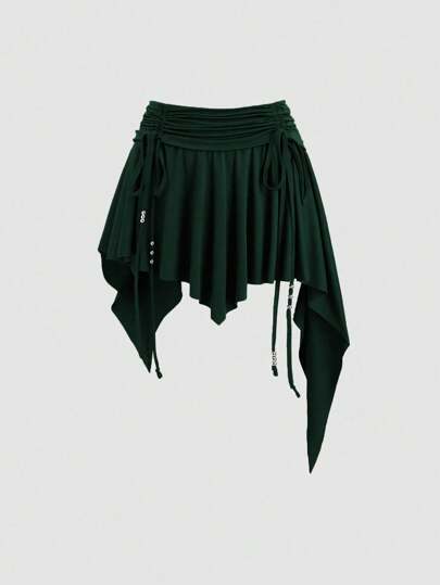 Sweetra 女士新款秋季西部牛仔风格海滩休闲抽绳腰部不对称荷叶边下摆迷你裙 Y2K - 綠色 - 查看 1