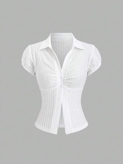 Sweetra Y2K 性感休闲通勤罗纹面料百搭度假上衣 - 白色 - 查看 1
