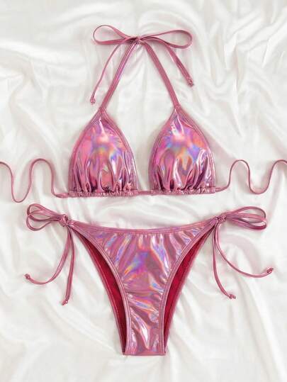 Review: 產品質量: ok 忠實於產品圖片: ok 氣味描述: 一般 面料材質: 漆皮 合身: ok SHEIN女士海灘藍色漸變紫色綁帶掛脖比基尼質量好,與賣家描述的完全一致,發貨速 度非常快,包裝非常仔細、嚴實,物流公司服務態度很好,運送速度很快,很滿意的一次購物經驗