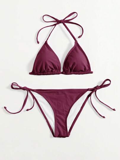 Swim Basics 吊脖三角形側繫帶比基尼泳裝 - 酒紅色 - 查看 1