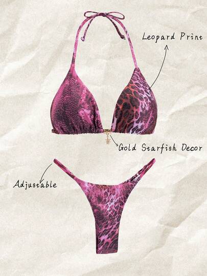 Swim Mod Springbreak 女士随机印花露背金属装饰性感比基尼泳衣套装,夏季沙滩装 - 彩色 - 查看 1