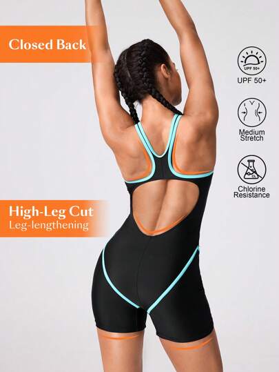 Swim Nautrix 竞速训练连体泳衣(带修身短裤) - 黑色 - 查看 4