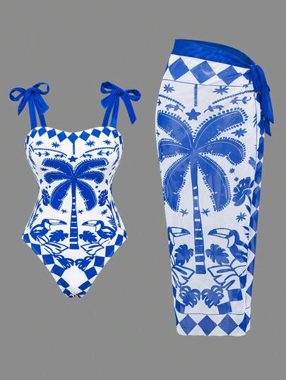 Swim Oasis 2026新款椰树印花ins风泳衣沙滩裙两件套女装 - 彩色 - 查看 1