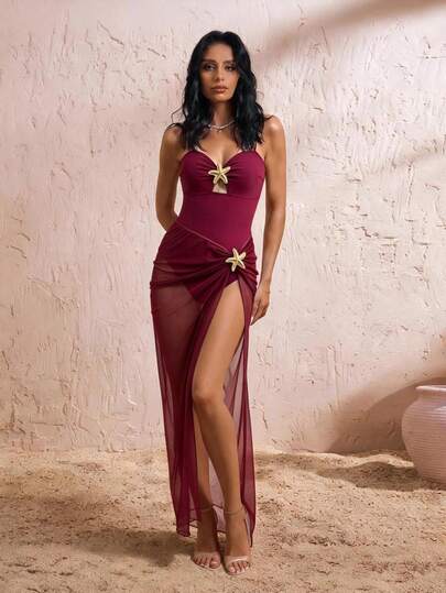 Swim Oasis 2件套女士夏季纯色吊带海星装饰长裙高端泳装套装