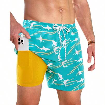 Swim Trunks Mens 5 Inch Inseam Compression Liner Short Men Bathing Suit Lined Swimming Shorts Men's Swim Suits