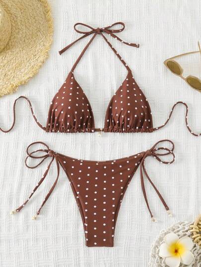 Swim Vcay 女士春假随机印花比基尼套装,适合夏季海滩度假 - 咖啡棕 - 查看 2