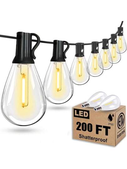 200FT Outdoor String Lights, Ultra Long Waterproof 60+2 Edison Shatterproof Bulbs Led Outside Patio Lights For Porch Deck Garden Backyard Balcony Wedding Party Decordoor String Lights, Ultra Long Waterproof 60+2 Edison Shatterproof Bulbs Led Outside Patio Lights For Porch Deck Garden Backyard Balcony Wedding Party Decor - 200 英尺 - 查看 1