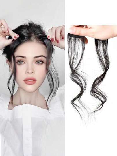 仿真毛前側長瀏海假鬍子剪片式接髮配件,女性髮型延長 - 黑色 - 查看 1