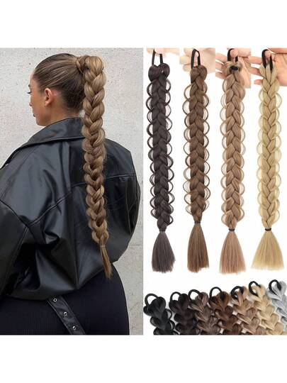 合成手工编织马尾辫接发带弹性橡皮筋 18 英寸长麻花辫马尾辫适合女性日常派对使用黑棕金灰假辫子发片增加发量 - 彩色 - 查看 1