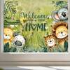动物图案窗贴,印有“欢迎回家”字样 - 透明墙贴,适用于开关和玻璃窗,自粘乙烯基材质,适合家居和汽车装饰,易于粘贴,也适合儿童卧室。