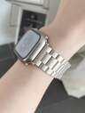 1 件男女通用苹果风格三珠装饰金属表带,现代简约设计纤薄轻巧表带,兼容 38 毫米 40 毫米 41 毫米 42 毫米 44 毫米 45 毫米 46 毫米 49 毫米,多尺寸时尚通用,金属饰面,兼容 系列