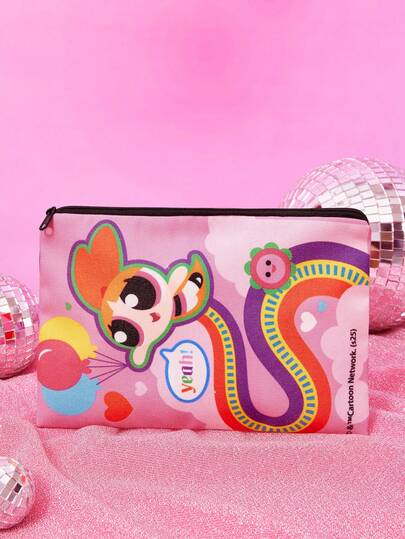 THE POWERPUFF GIRLS X SHEIN 1个时尚可爱棋盘格毛茛图案拉链收纳袋 - 彩色 - 查看 1