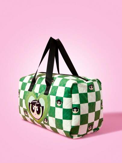 THE POWERPUFF GIRLS X SHEIN 可折叠格子毛茛图案大容量旅行袋 - 彩色 - 查看 1