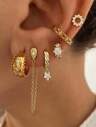 7 件精美 24K 镀金方晶锆石耳钉 女士光滑简约环形耳环套装