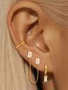 3 件豪华 24K 镀金方晶锆石女式环形耳环多色锆石时尚小耳环套装