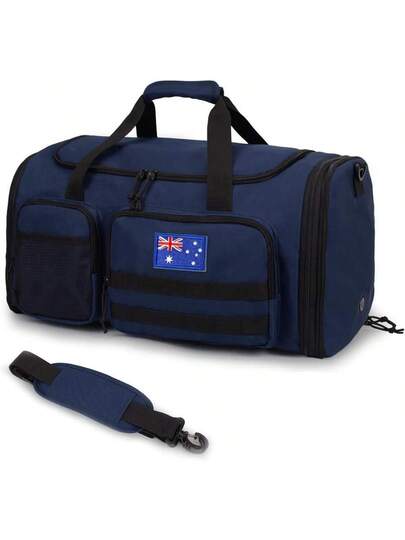 Tactical Duffle Bag For Travel Expandable 52L Large Duffle Bag For Men Gym Duffel With Wet Pocket Multi-Functional Carry On Bags Weekender Overnight Bag Organizer Duffel Bag For Travel - 藍色 - 查看 7