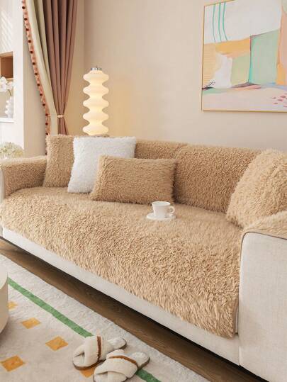 唐獅毛絨舒適沙發靠墊套,加厚冬季窗座墊,客廳防滑通用沙發套,簡約現代風格,四季皆可使用 - 棕色的 - 查看 8