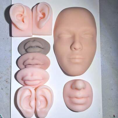 纹身硅胶模型,纹身穿孔练习模拟人体部位展示穿刺饰品,硅胶耳模,鼻子和嘴巴模型,左右柔软模型假耳脸模,用于饰品展示和化妆纹身穿孔练习的硅胶人体部位,可重复使用 - 彩色 - 查看 10