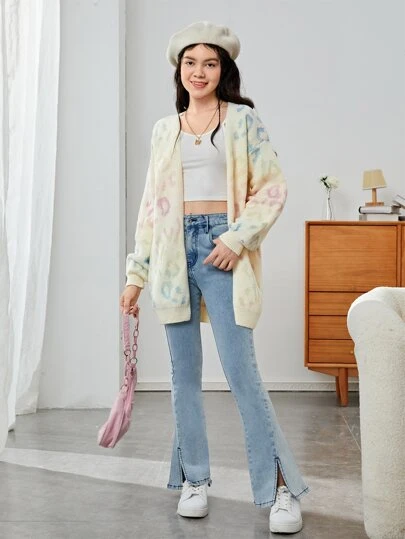 青少年女孩圖形圖案落肩袖開襟開衫 - 彩色 - 查看 1