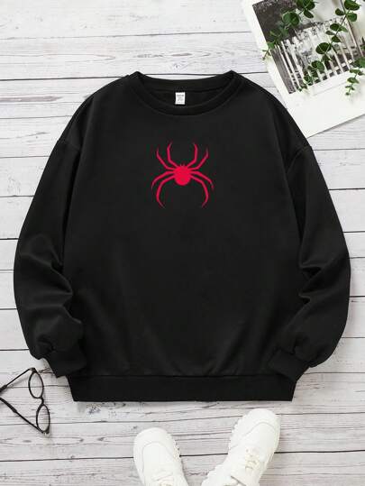 青少年女孩蜘蛛印花保暖衛衣 - 黑色 - 查看 1
