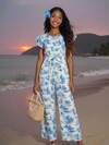 SHEIN Sparklyn 优雅不对称荷叶边金属纽扣连体裤,适合少女,春夏穿着,通勤族适用。