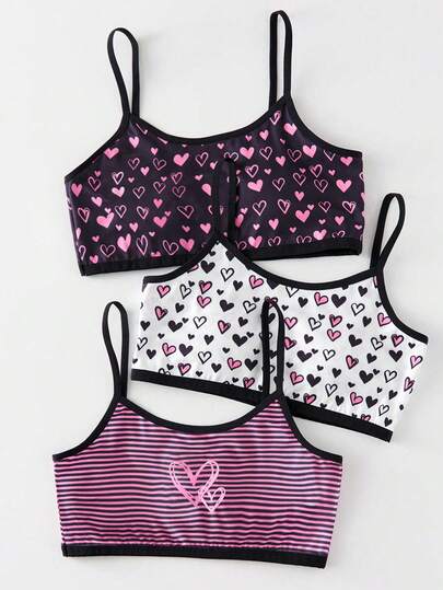 3件套少女简约蝴蝶结、爱心、字母图案柔软吊带背心套装 - 彩色 - 查看 3