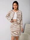 SHEIN 青少年女孩卡其色纯色休闲复古优雅宽松圆领落肩上衣和阔腿裤针织套装两件套,适合秋冬季,返校季节,温暖的冬季套装,女孩套装