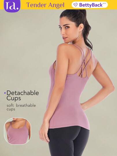 Tender Angel 新款女式长款瑜伽背心、健身衫、速干无袖露背健身服 - 紫色 - 查看 4