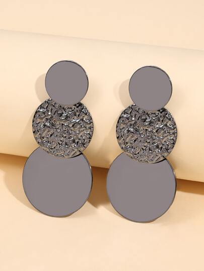 紋理質感圓形耳墜 - 槍黑色 - 查看 1