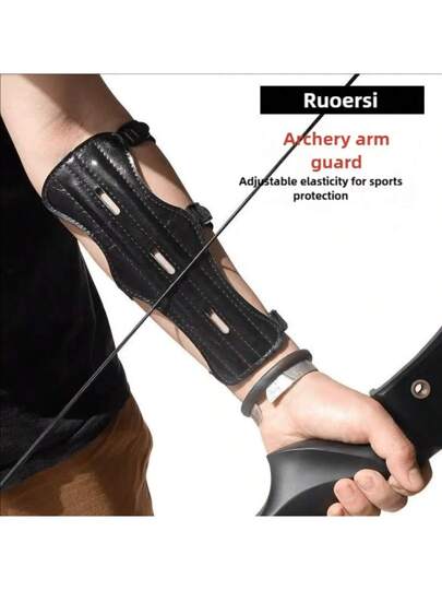 三孔黑色 PU 材料护臂,传统反曲弓射击和射箭用品,弓箭保护设备 - 多 - 查看 1