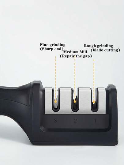 三档多功能手持磨刀器,防滑底座,快速磨刀工具,厨房刀具配件 - 彩色 - 查看 6