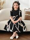SHEIN Glamorique Kids 少女編織長袖圓舞裙星網蕾絲公主裙