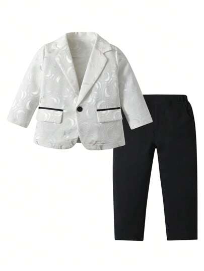 SHEIN 男童白色提花套装 2 件套 正式礼服套装 适合节日和节庆场合 - 白色 - 查看 1