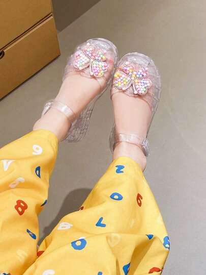 女童亮片蝴蝶结凉鞋,露趾踝带公主鞋,适合夏季海滩和日常穿着