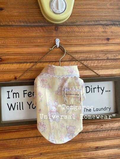Tongaroo 春季新款可爱印花蕾丝边宠物猫狗衬衫,适合贵宾犬、马尔济斯犬、泰迪犬等小型犬。 - 黃色 - 查看 9